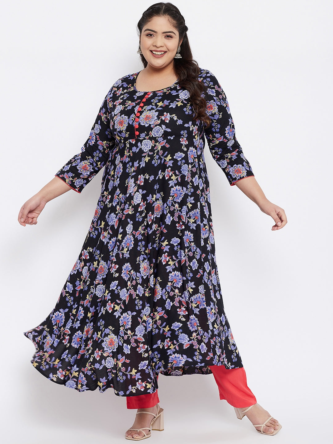 Tissu Women Plus Size Black Floral Printed Flared Kurta Is An Exclusive Ethnic Wear Manufactured Keeping In Mind The Taste And Preference Of Today's Women. Featuring Ankle Length With 3/4 Sleeves And Round Neck. This Kurta Is Made From Rayon Fabric. It's Very Soft And Skin Friendly Fabric. Wear At Parties, Office, Casual, Ethnic Wear. You will always be the center of attraction of any gathering by this kurta. This kurta will add extra class to your looks. This can be a perfect selection for you.We can ship to virtually any address in the world. Note that there are restrictions on some products, and some products cannot be shipped to international destinations.